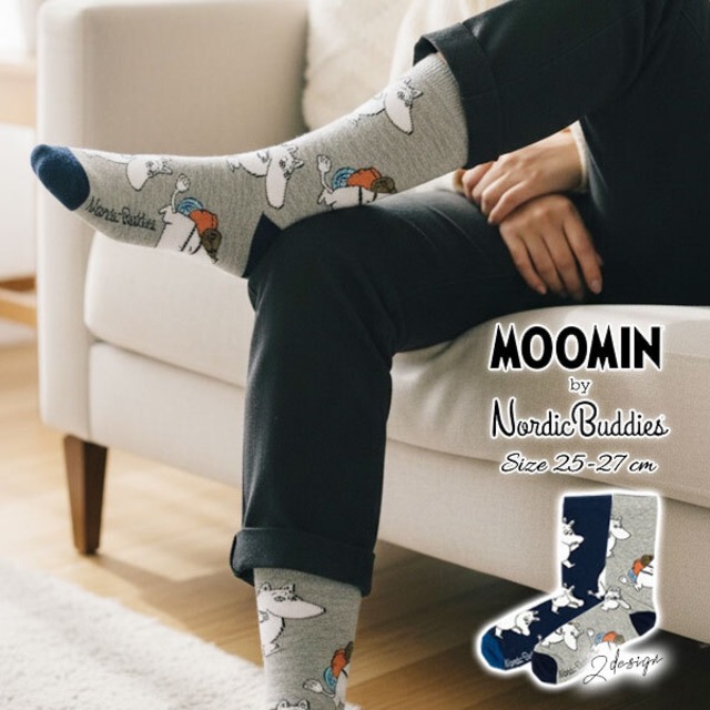 【MOOMIN×Nordicbuddies】ムーミン アドベンチャー メンズ クラシック ソックス グレー ネイビー ハイソックス・ノルディックバディズ ミドル丈 靴下 2design(25cm-27cm サイズ)【メール便可】