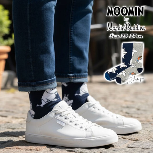 【MOOMIN×Nordicbuddies】ムーミン レトロ クラシック キャラクター メンズ ハイソックス・ノルディックバディズ ミドル丈 靴下 2design(25cm-27cm サイズ)【メール便可】
