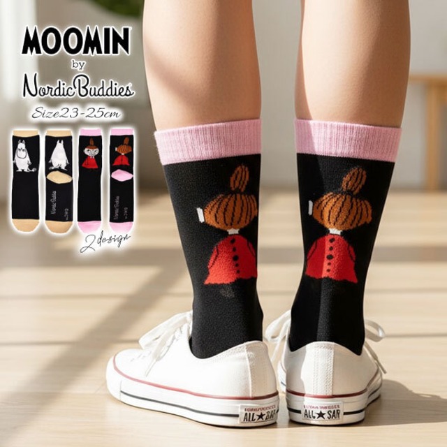 【MOOMIN×Nordicbuddies】リトルミイ×アングリームーミン レディース クラシック ミドル ハイ ソックス・ノルディックバディズ キャラクター 女性 婦人 靴下 2design(23cm-25cm サイズ)【メール便可】