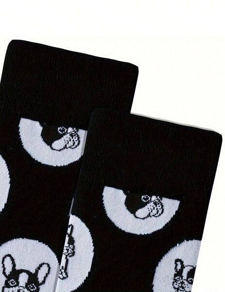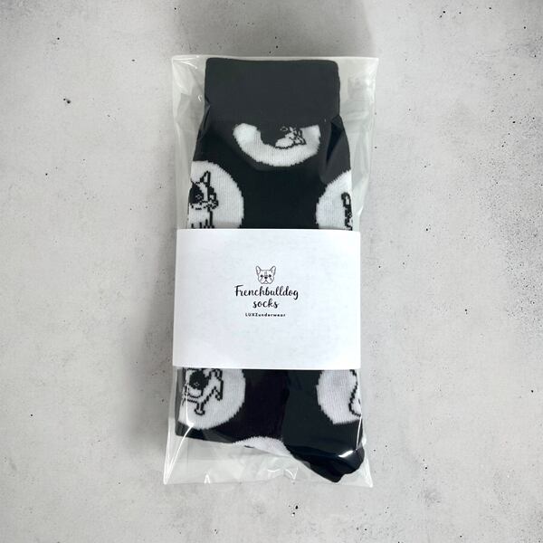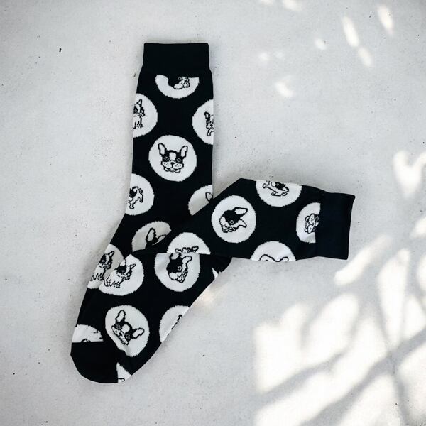 モノクロでクールに!フレンチブルドッグで可愛足下に。ショッパー付き♪ メンズ レディース ユニセックス ハイソックス 1000円ギフト / 男性 女性 靴下 ソックス(24cm-27cm / 27cm-29cm サイズ)【SH】【メール便可】