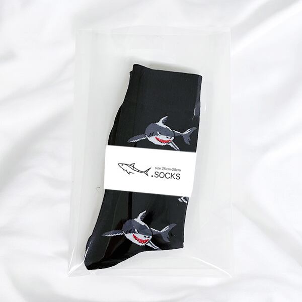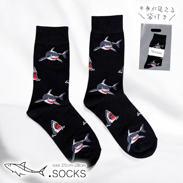 (鮫 魚 シャーク ブラック イラスト かわいい デザイン おもしろ おしゃれ シャレ パッケージ お中元 大きいサイズ 紳士 スーツ socks)