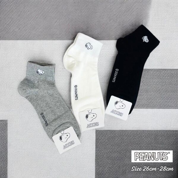 【PEANUTS】ワンポイント スヌーピー アイコン ユニセックス アンクル丈 ソックス メンズ レディース ピーナッツ キャラクター くるぶし ソックス 靴下 Peanuts Band middle(26cm-28cm対応)【3color】【メール便送料無料】