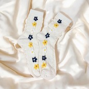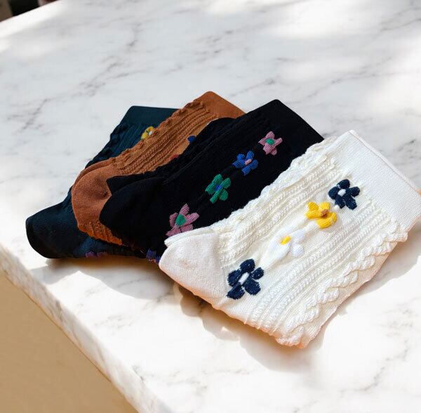 エンボス加工の立体フラワー ミドル丈 ソックスです。