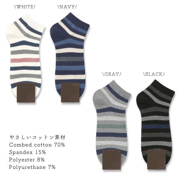 選べる♪お得な3足セット! マルチ ボーダー カラー メンズ アンクル ソックス・男性 紳士 靴下【TD】【メール便】