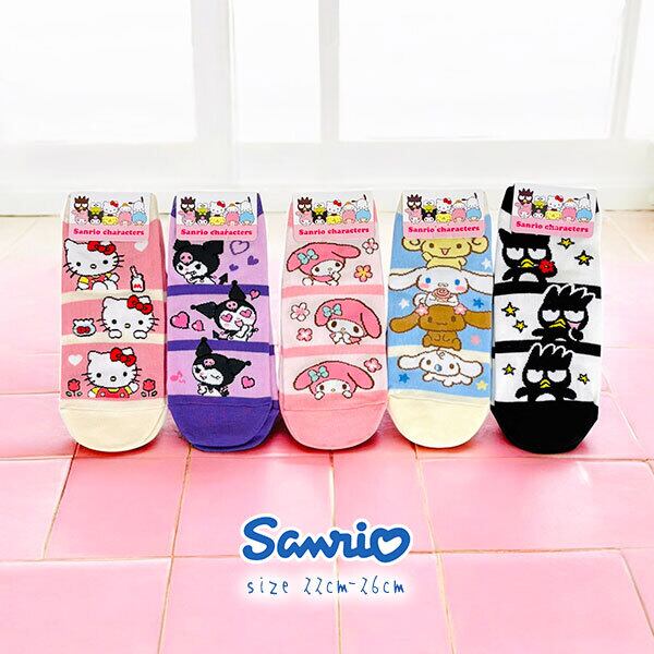 【サンリオ】コミック ボーダー キャラクター レディース くるぶし ソックス・ハローキティー マイメロディー シナモロール クロミ バッドバツ丸 Sanrio アンクル丈 靴下 5design【メール便可】