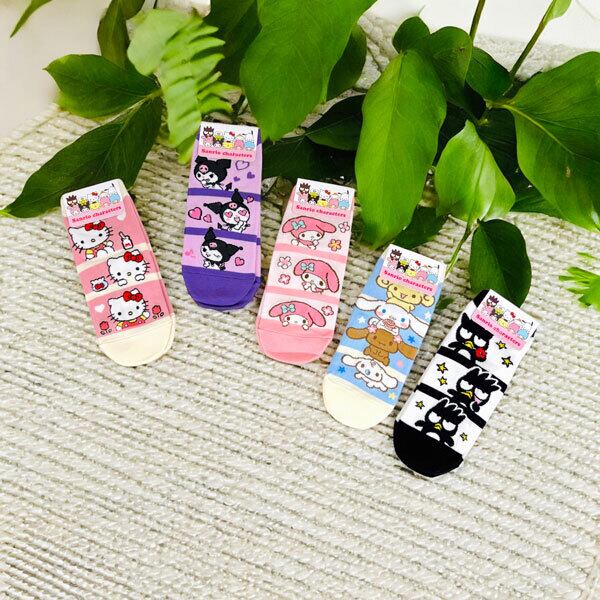 お得な3足セット♪【サンリオ】コミック ボーダー キャラクター レディース くるぶし ソックス・ハローキティー マイメロディー シナモロール クロミ バッドバツ丸 Sanrio アンクル丈 靴下 5design【メール便可】