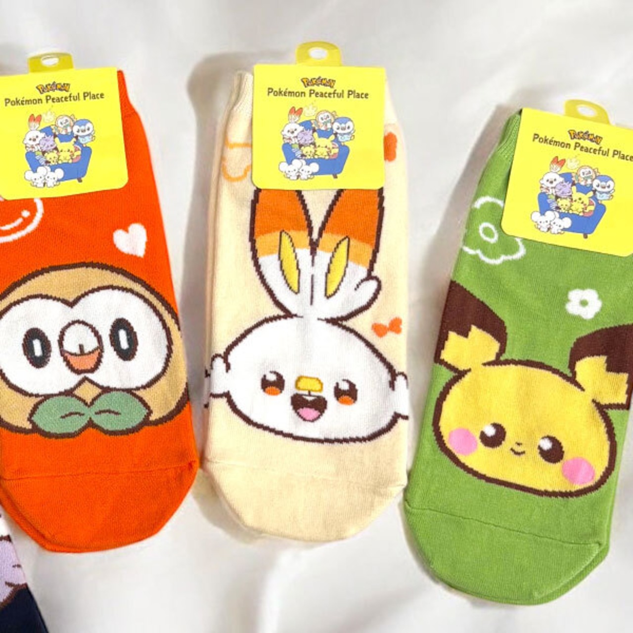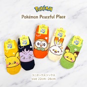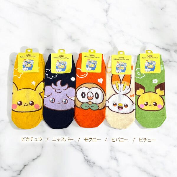 【Pokémon Peaceful Place】ポケピース キャラクター フェイス メンズ レディース ユニセックス アンクル ソックス(ピカチュウ ヒバニー モクロー ニャスパー ピチュー)くるぶし丈 靴下 5design