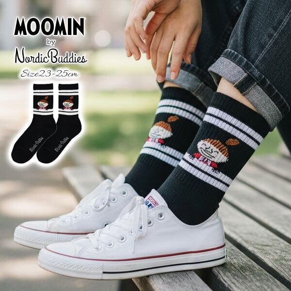 【MOOMIN×Nordicbuddies】リトルミイ ご機嫌 レディース レトロ ソックス ブラック・ノルディックバディズ(ミドル ハイ ムーミン キャラクター 女性 婦人 靴下 23cm-25cm サイズ)【メール便可】