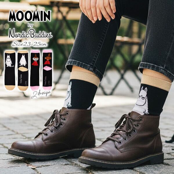 アングリームーミン×リトルミイ レディース クラシック ミドル ハイ ソックス・ノルディックバディズ キャラクター 女性 婦人 靴下 2design(23cm-25cm サイズ)【MOOMIN×Nordicbuddies】【メール便可】