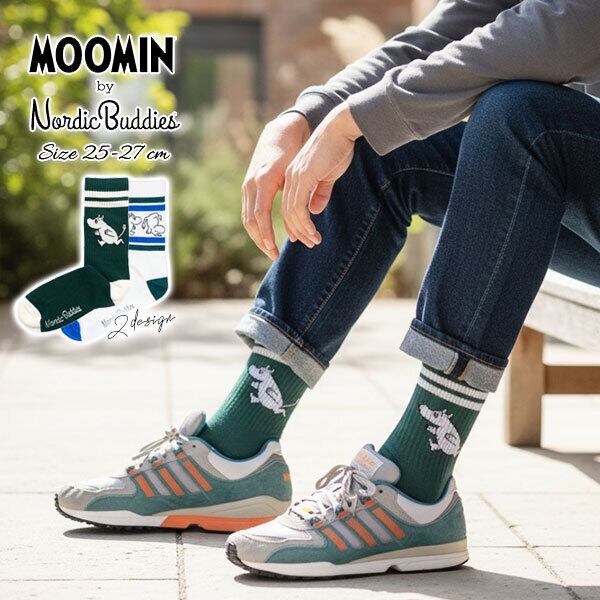 ムーミン レトロ クラシック キャラクター メンズ ハイソックス・ノルディックバディズ ミドル丈 靴下 2design(25cm-27cm サイズ)【MOOMIN×Nordicbuddies】【メール便可】