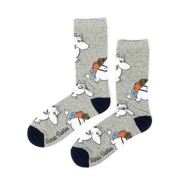 【MOOMIN×Nordicbuddies】ムーミン アドベンチャー メンズ クラシック ソックス グレー ネイビー ハイソックス・ノルディックバディズ ミドル丈 靴下 2design(25cm-27cm サイズ)【メール便可】