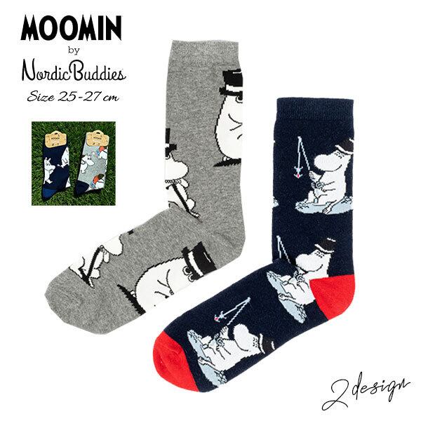 【MOOMIN×Nordicbuddies】2デザインから選べる♪ ムーミン パパ 釣り or 杖 メンズ ハイソックス・ノルディックバディズ ミドル丈 キャラクター 靴下 2design(25cm-27cm サイズ)【メール便可】