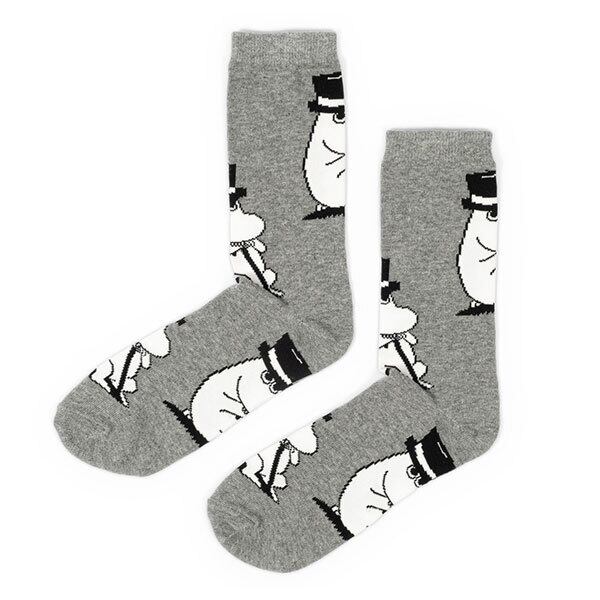 ムーミン谷の頼れるお父さん「ムーミンパパ」がデザインされた、遊び心あふれるメンズハイソックスです。