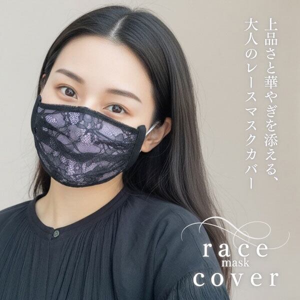 不織布マスクに重ねるだけで、表情をやわらかく見せる上品レースのマスクカバーです。