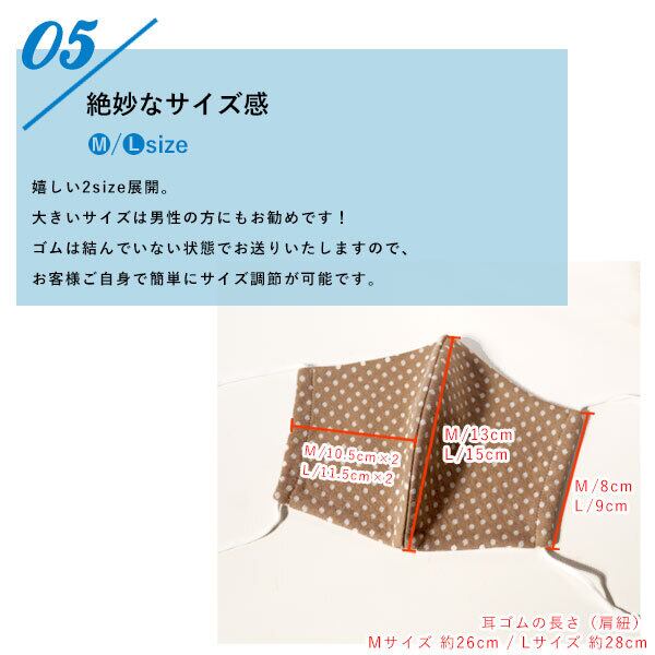 耳ゴムの長さ→Mサイズ 26cm / Lサイズ 28cm