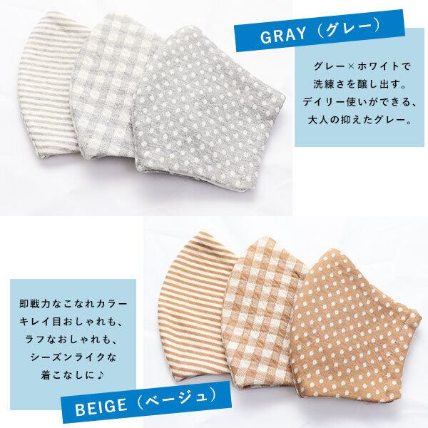 特定ウイルスの数を99%減少、細菌の増殖を抑制(立体加工 日本製 布マスク コットン 綿 春用 ホワイト グレー ベージュ ボーダー ドット チェック)