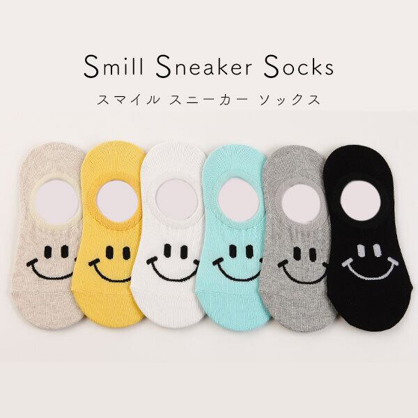 【新色入荷】お得な3足セット☆脱げない!フットカバー ソックス レディース スマイル デザイン♪浅履きタイプでスニーカーから見えない おしゃれな 靴下 フォトジェニックな足元に♪