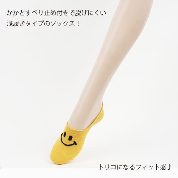 (浅履き くるぶし おしゃれ 脱げない 滑り止め付き スリッポン スマイリー ニコちゃん 笑顔 ギフト プレゼント メール便可)
