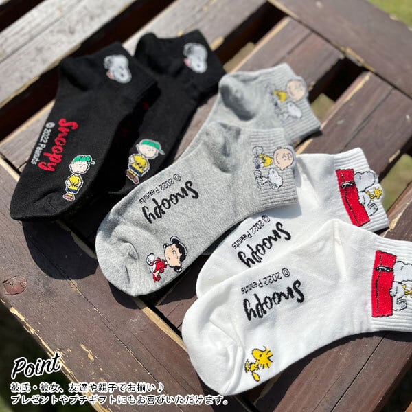お得な3足SET♪【PEANUTS】足首チラ見せ♪絶妙な丈感に異なるデザインがポイント!I Like Snoopy【3color】スヌーピー キャラクター アンクル ソックス・くるぶし 靴下