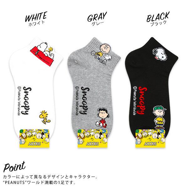 【PEANUTS】足首チラ見せ♪絶妙な丈感に異なるデザインがポイント!I Like Snoopy【3color】スヌーピー キャラクター アンクル ソックス・くるぶし 靴下