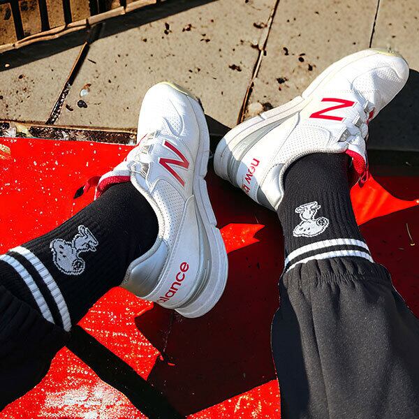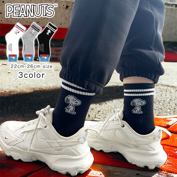 2本ラインにスヌーピーがデザインされたカジュアルなソックスが登場。