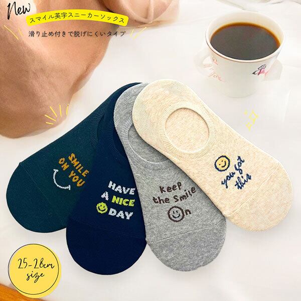 スマイル英字 メンズ スニーカー ソックス フットカバー 男性 靴下【4design】【TD】【メール便可】