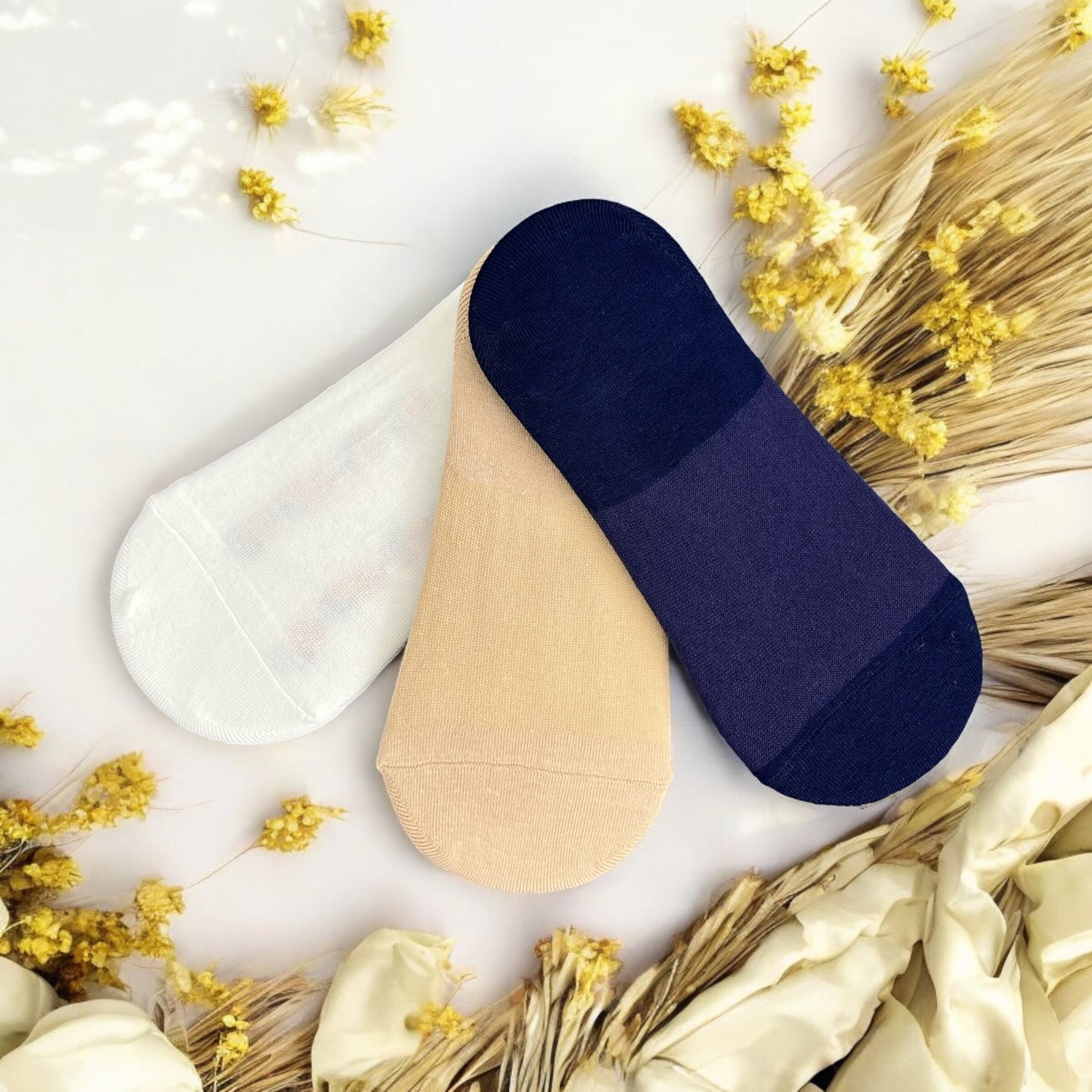 お得な3足セット♪ 滑り止め付きで脱げにくい!エンボス フラワー フットカバー スニーカー ソックス レディース 靴下【メール便可】