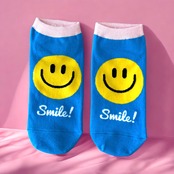 (1p 1足 かわいい 可愛い キャラクター 夏用 冬用 女性 女の子 子供 キッズ 小学生 ワンポイント 総柄 ニコちゃん スマイリー ブルー イエロー ホワイト カラフル ギフト プレゼント)