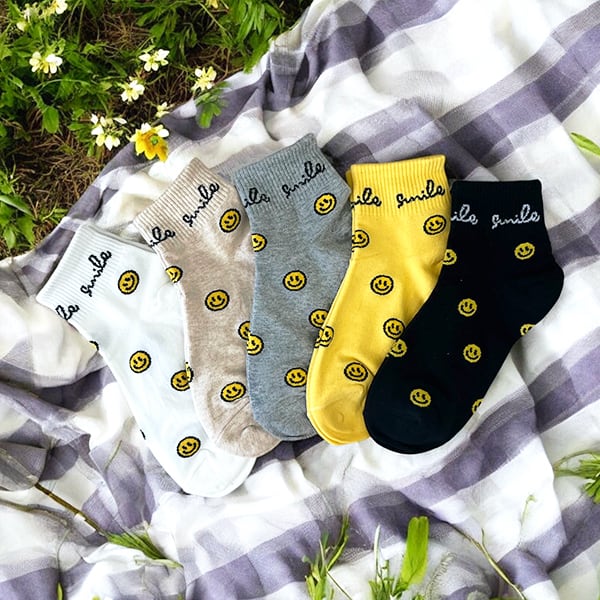 選べる3足♪ 5カラーから選べる!スマイル パターン デザイン アンクル ソックス / レディース メンズ ユニセックス ミドル丈 靴下【TD】【メール便可】