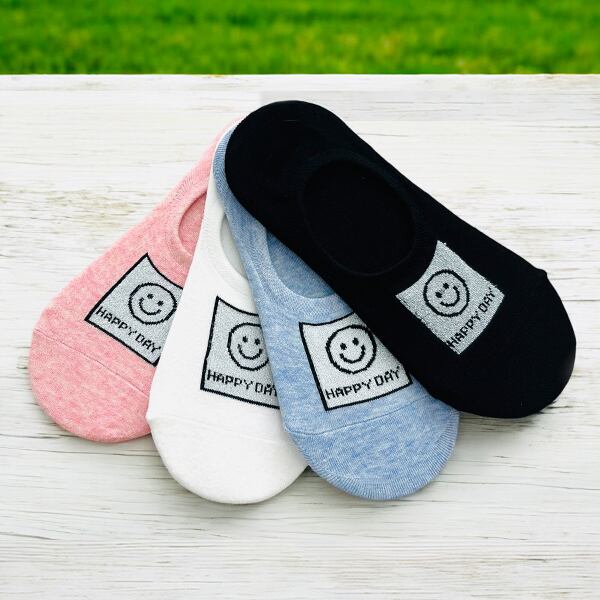 滑り止め付きで脱げにくい!ハッピーデイ 4カラー スマイル フットカバー スニーカー ソックス レディース 靴下【メール便可】