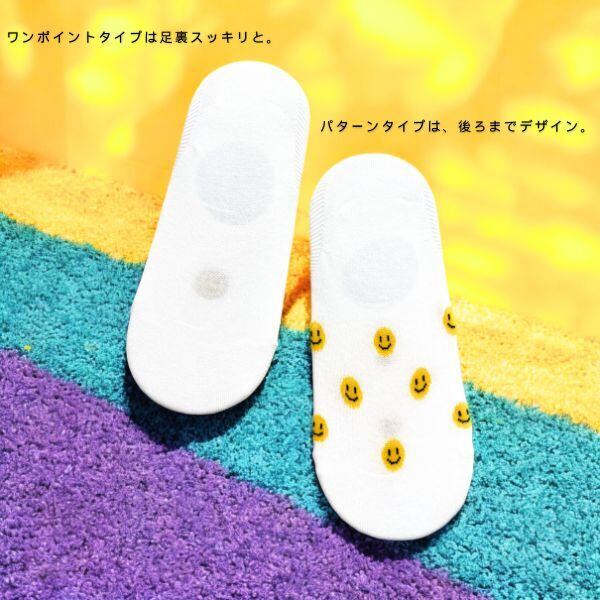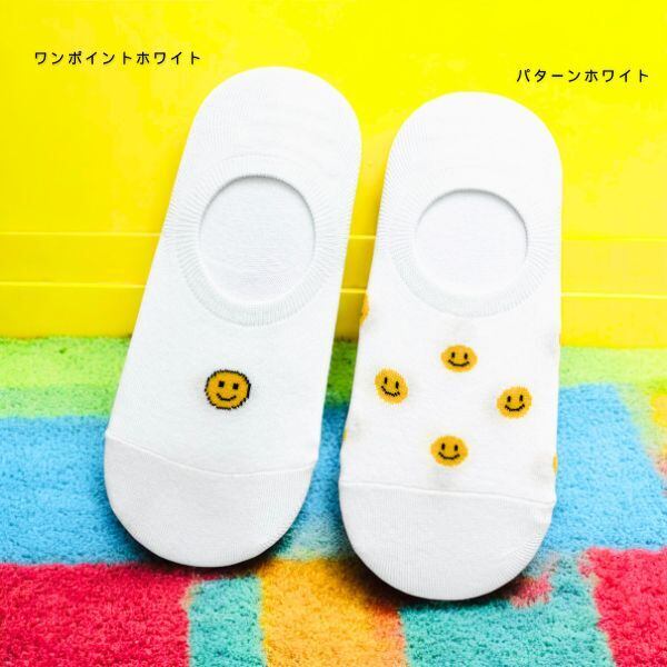 (1p 1足 滑り止め 浅履き かわいい 可愛い キャラクター 夏用 冬用 女性 女の子 大人 子供 キッズ 小学生 ポイント パターン ニコちゃん スマイリー 白 ホワイト ギフト プレゼント)