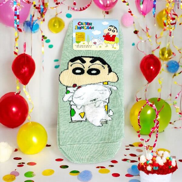 クレヨンしんちゃん×シロ 異素材MIX アンクル丈 ソックス レディース メンズ キッズ ユニセックス くるぶし 靴下(22cm-26cm サイズ)【メール便可】