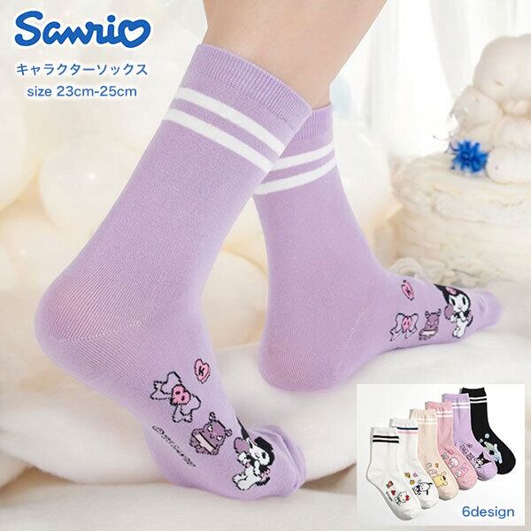 お得な3足セット♪かわいいは足元から♪【Sanrio】サンリオ キャラクターズ バター ファッション ソックス レディース アンクル ミドル丈・ハローキティー マイメロディー シナモロール クロミ ポムポムプリン ポチャッコ Sanrio 靴下 6design(23cm-25cm)【メール便可】