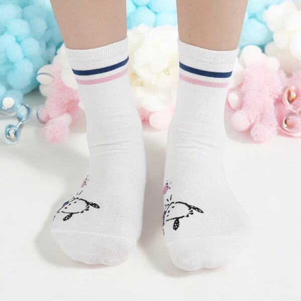 サンリオキャラクター×アイコンを配置したカワイイミドル丈ソックスに。